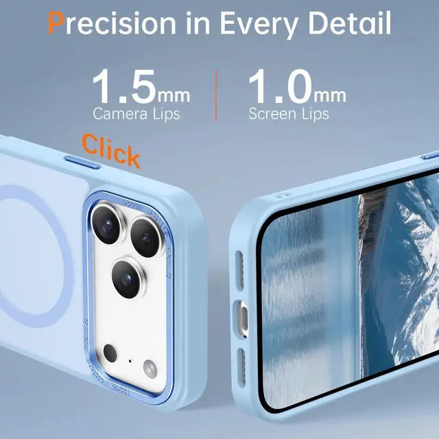 Compatible with Mag-Safe AccessoriesThe powerful magnet array inside the light blue iphone 17 pro case provides superior magnetic force, can firmly attach to all Mag Safe accessories and QI-certified wireless chargers, wallet, battery pack, magnetic car mounts, etc., ensuring a secure and stable connection even when on the move, making charging faster and safer.