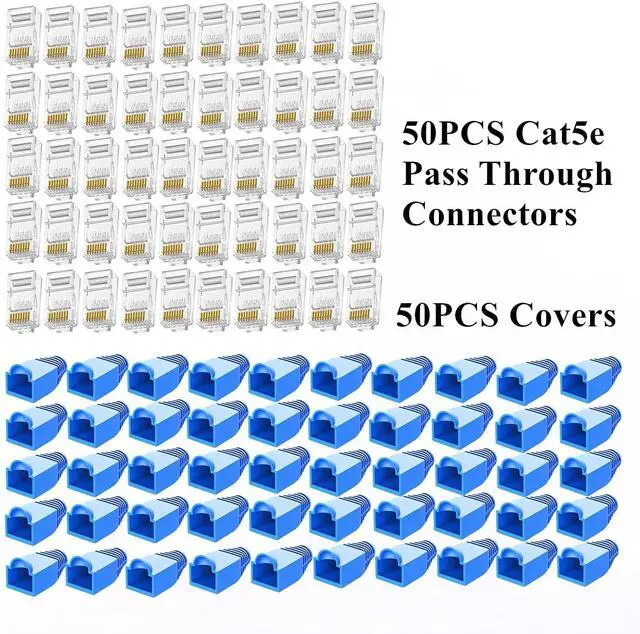 50 PCS Premium Quality rj45 Cat5e Pass Through Connectors and 50 PCS Covers