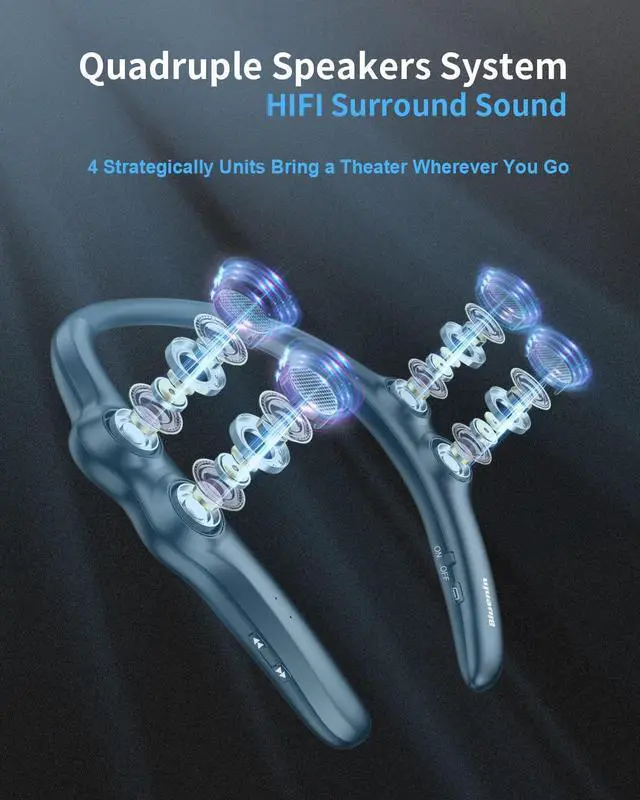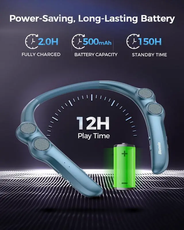 Neckband Bluetooth Speaker, Wireless Wearable Speaker w/lightest 78g Weight, High Fidelity 3D Stereo Sound, 12 Hrs Playtime, Portable Speakers w/Built-in Mic for Home, Office and Outdoors