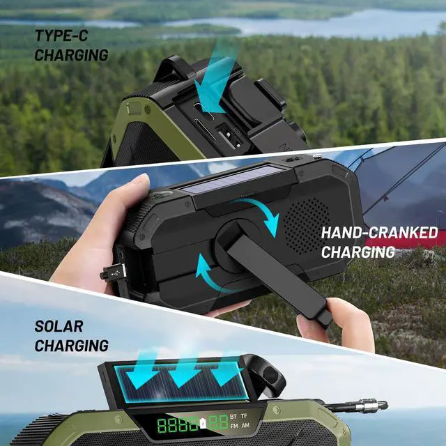 BLUETOOTH MODE:our radio is not limited to use in emergency situations, because it has a professional Bluetooth speaker function,Loud and clear sound can fully meet daily and outdoor use.perfect for the beach, camping, forest, boat & hiking