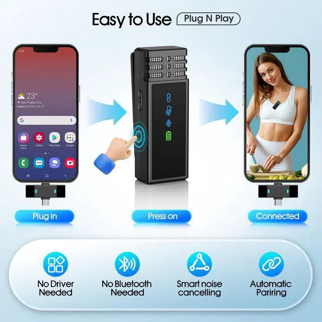 Record your voice from 360° directions, it can provide more natural and stereo sound, perfect for interviews, meetings, live streaming, and more.