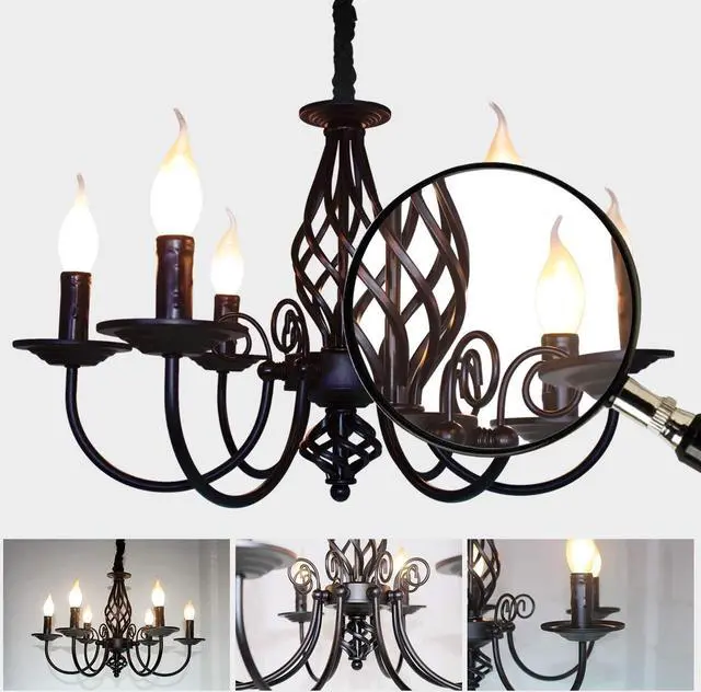 Crafted of metal in an antique black finish, this design features 6 candle-shaped bulb stems with dish cups, placed on 6 simply curved iron arms. GARWARM Elegant French Country Chandelier, especially designed to illuminate the heart of your dining room, bedroom or farmhouse styled places. This retro French country chandelier can satisfy your pursuit of retro style.