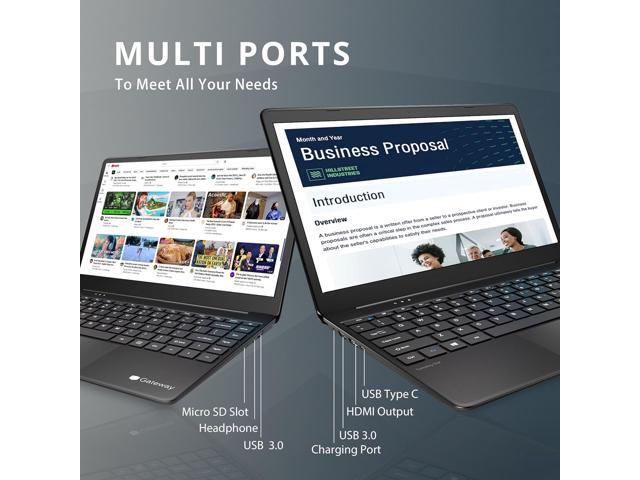 Gateway Ultra Slim Laptop, 14.1" IPS FHD Display, Intel Core i5-1135G7, 16GB RAM, 512GB SSD, Intel Iris Xe Graphics, 1.0 MP Camera, Fingerprint Scanner, Bluetooth, Black, Win 10, 32GB Hotface USB Card