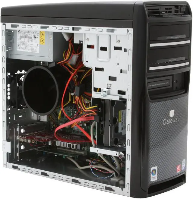 The Gateway GT5678 offers super-fast processing for a new world of multimedia. It features an Intel quad-core Core 2 Quad Q6600 processor, 4GB of DDR2 RAM, and a staggering 750GB hard drive. With a Radeon HD 2400XT graphics card and 7.1-channel HD audio on board, you’ll see crisp video and bold audio from your HD media!