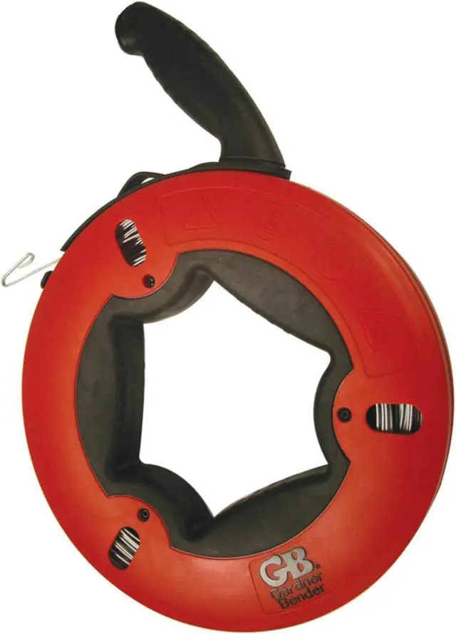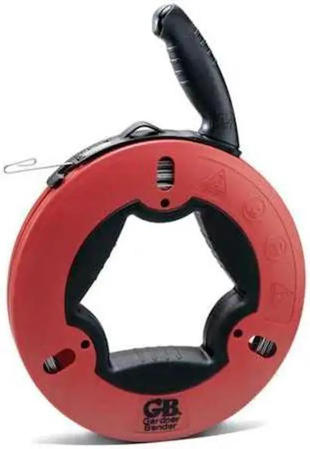 The Gardner Bender FTS-250R Fish Tape is the ideal tool for fishing wire, cables, or piping through walls and floors. The tape features a comfort formed rubber grip that makes it easy to hold onto. Corrosion resistant, the plated wire is made of steel and measures 1/8" x 0.060". It has a flat profile with a length of 250 ft and case style winder slide. This red fish tape comes in an ABS nylon case measuring 12 in. in diameter. Gardner Bender's Fish Tape will help you accomplish your next wiring project with ease.