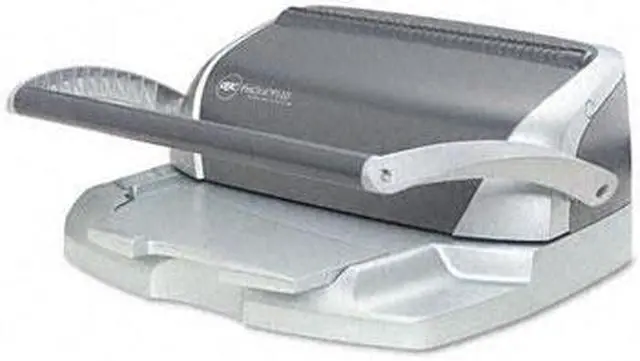 Manual punch system with lever is recommended for small offices with monthly usage. GuideRight paper alignment aligns paper for accurate punching every time. Front and side guides align pages before punching to prevent mispunched sheets. Punch documents with the simple push of a button. Bind ProClick spines fast to meet tight deadlines. Easily add or delete pages without a machine. Punch capacity is 15 letter-size sheets (20 lb. bond) and oversize covers. Bind capacity is 110 sheets. Maximum comb size is 5/8".