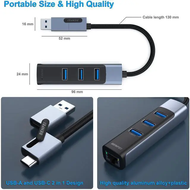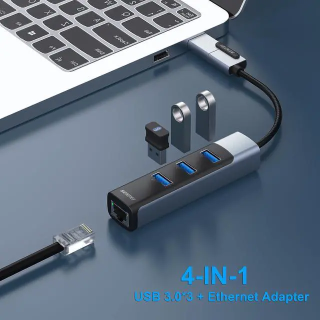 2 in1 USB-C/USB 3.0 to Ethernet Adapter with 3 USB 3.0 Ports