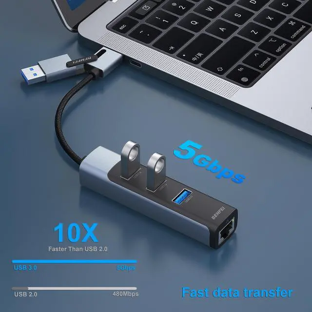 - To reach 1000Mbps, firstly please make sure to use CAT6 & Above Ethernet cables. Secondly, please make sure the USB-C port is USB 3.1 Gen1 and above, because USB 2.0 can't reach 1000Mbps.