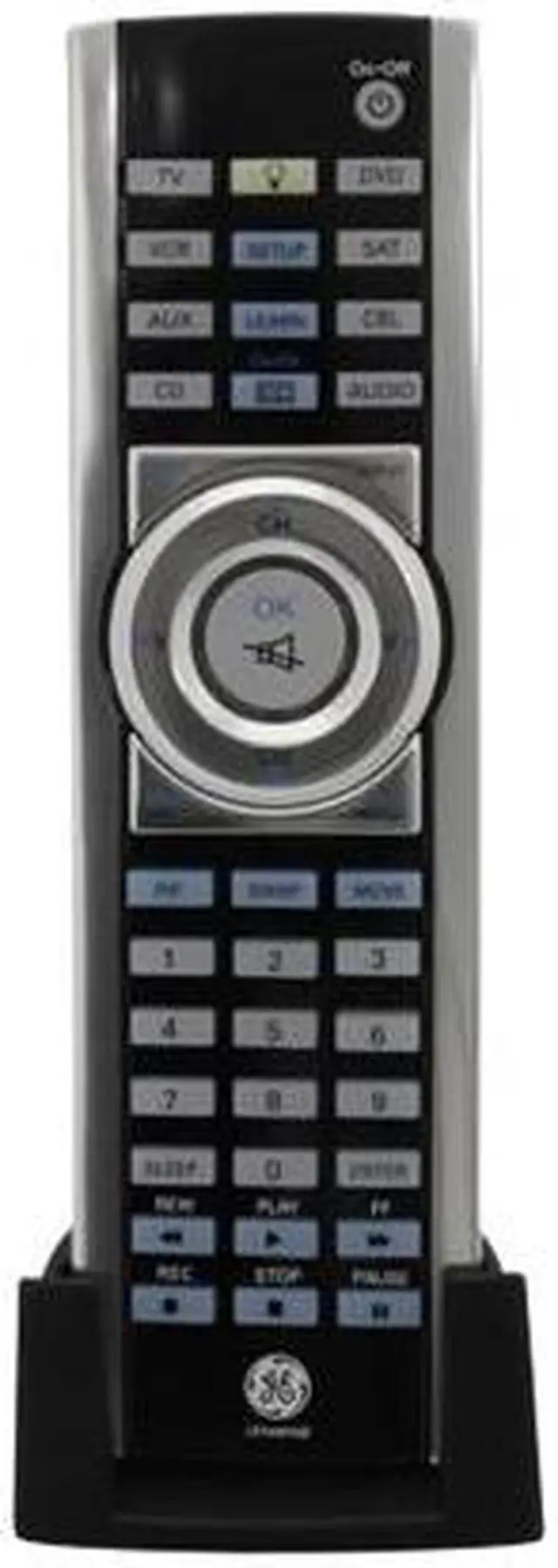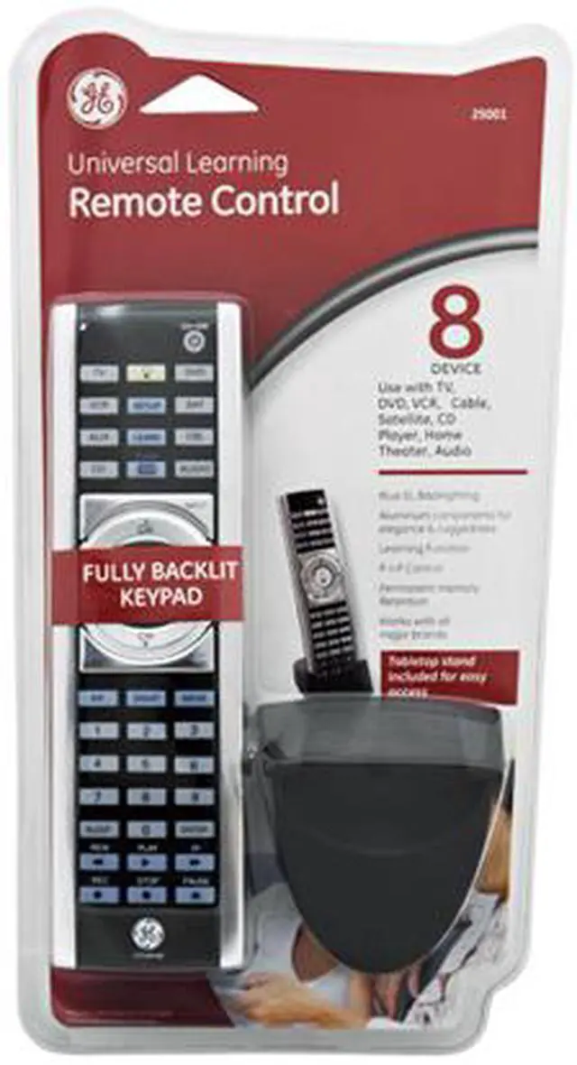 | Features | Elegant Universal Remote Works with over 325 brands Learn Function- Allows remote to “learn” special functions from original remote Blue electroluminescent backlight keypad Aluminum components for elegance and ruggedness Picture in picture control Permanent code retention in IC memory Simple set-up with code search (scans entire library to find right code for your equipment) Bonus table-top stand included |