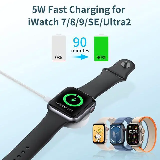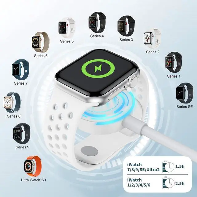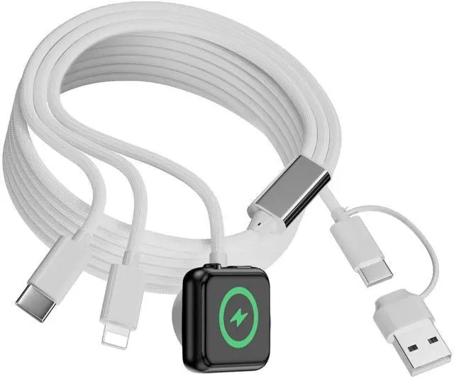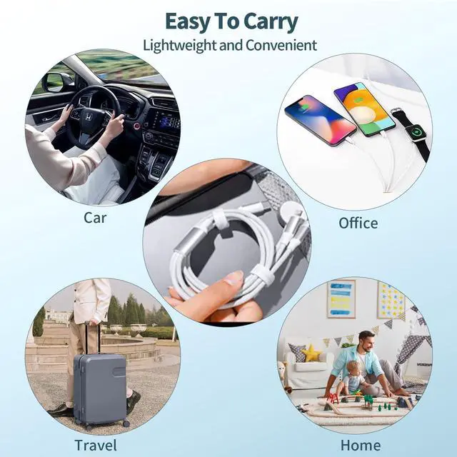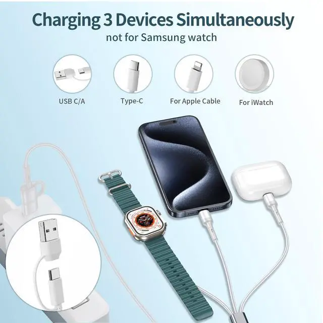 Introducing the ultimate travel essential - the 3 in 2 Multi Charging Cable! This high-quality material cable is designed to charge your Apple Watch, iPhone, and AirPods simultaneously with its USB to USB C charger. With fast charging capabilities , you can power up your devices in no time.