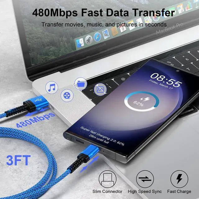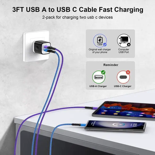 2 Pack USB A to USB C Fast Charging Cable, 3FT USB Type C Charger Cord Fast Charging Cord for Samsung Galaxy S26
