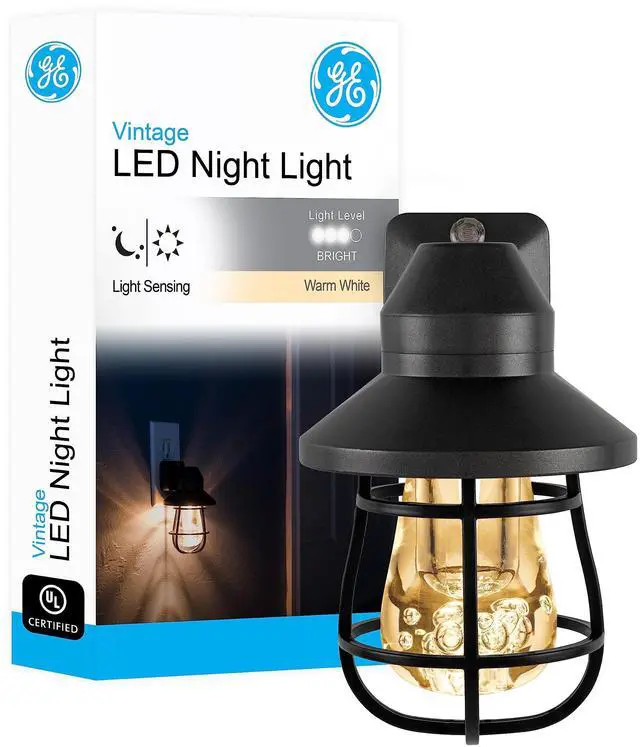 GE Vintage Night Light Rustic, farmhouse cage design with a vintage, Edison-style bulb provides bright light for your evenings