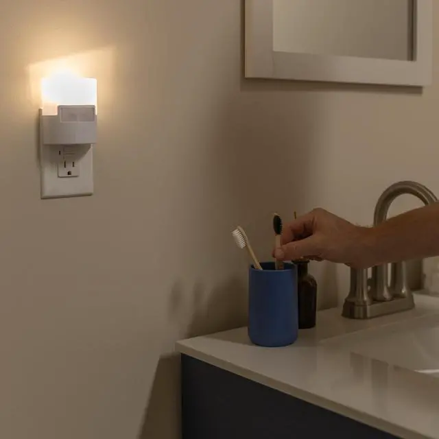 Compact Design Night light plugs into any standard outlet and leaves the 2nd outlet free for use