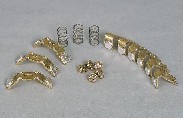 Replacement Contact Kit, Number of Contacts Included 3, Compatible with Series 200-Line Magnetic Contactors, 200-Line Magnetic Starters, 300-Line Magnetic Contactors, 300-Line Magnetic Starters, NEMA Size 2, Includes Movable Contacts, Springs, Stationary Contacts. This item has been restricted from sale in the following state (s): []
