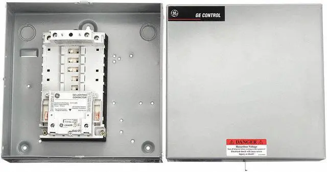 Lighting Magnetic Contactor, Number of Poles 2, Coil Volts 120V AC, 30 A Full Load Amps, Electrically Held, Enclosure NEMA Rating 1, Height 10.0 in, Width 10.0 in, Depth 4.63 in, Hz 50/60, HP @ 1 Phase - 120V 1 hp, HP @ 1 Phase - 240V 2 hp, HP @ 3 Phase - 208V 3 hp, HP @ 3 Phase - 240V 5 hp, HP @ 3 Phase - 480V 10 hp, HP @ 3 Phase - 575V 15 hp, Standards CE, cUL, E1811 Vol 19, UL 508 File.