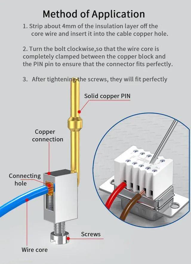 - The screw terminals guarantee a strong and secure connection capable of withstanding up to 30 pounds of force.
