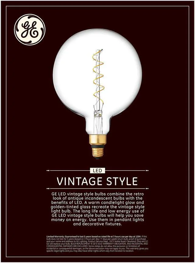 GE Lighting 93099993 40 W Equivalent GE Large Vintage Style Spiral Filament 40-Watt Replacement Clear Finish G63 Globe LED