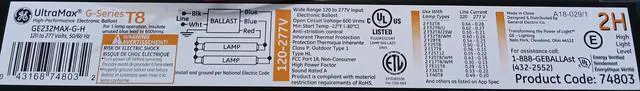 UltraMax (R) G, Electronic, Fluorescent Ballast, Ballast Start Type Instant, Input Voltage 120 to 277V AC, Number of Bulbs Supported 1, 2, Max. Bulb Watts 75 W, Ballast Bulb Type T12, T8, Dimming No, Dimming Type No Dimming, Dimming Method No Dimming, Dimming Range No Dimming, CA Title 20 Compliant No, Min. Starting Temp. 0 Degrees F. This item has been restricted from sale in the following state (s): []