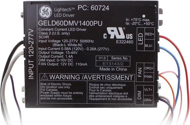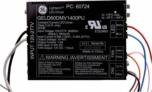 GE GELD60DMV1400PU 60724 Constant Current Led Driver, 120/277V, 15-44V, 1.4A