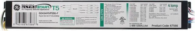 ballast operates four F54T5/HO lamps at 120/277 input volts. Ideal for use in