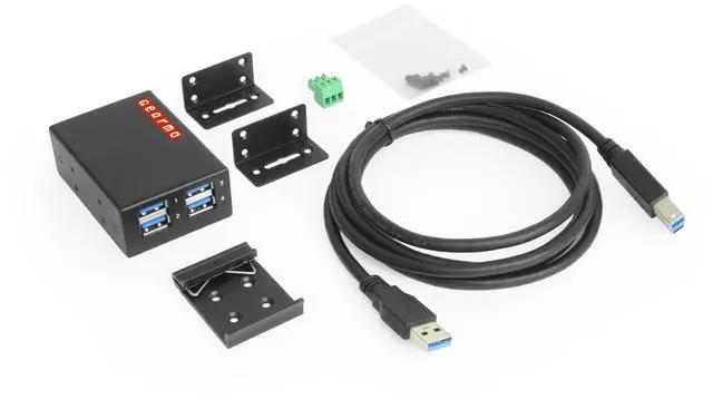The GM-BA4XUH-M USB 3.2 Gen 1 hub adds four high-speed USB 3.0 ports in a compact, mountable package - perfect for makers, tinkerers, and tech pros looking to expand their setup without clutter. With front-facing ports for easy access and a slim, 1-inch profile, it fits seamlessly into tight spaces and gets your gear connected fast.