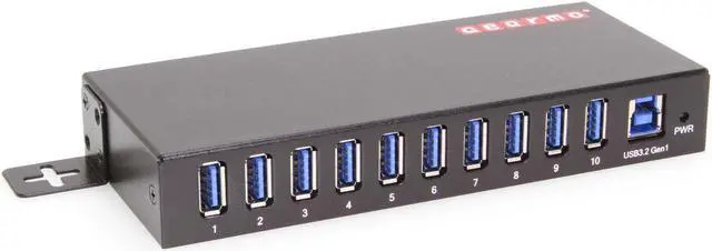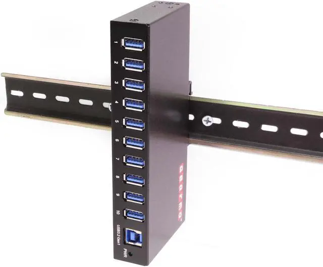 The GM-HU310A Gearmo USB 3.2 Gen 1 hub is an industrial metal hub with 10 downstream USB Type-A port. All ports both downstream and upstream are conveniently located on the front facing panel. The GM-HU310A USB 3.2 Gen 2 hub includes mounting option hardware for both surface and DIN-Rail mounting. Compliant with USB 3.2 Gen 1 standards data speeds up to 5Gbps can be achieved and is backward compatible with USB 2.0 and 1.1.