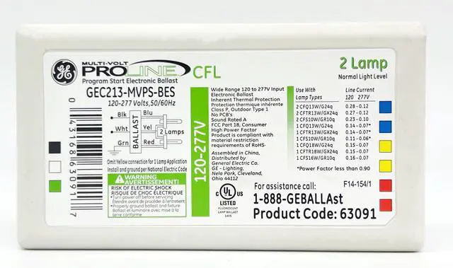 GE 63091 High Frequency Electronic Ballast for 2 OR 1 CFL Lamp, Compact Fluorescent, ProLine, GEC213-MVPS-BES