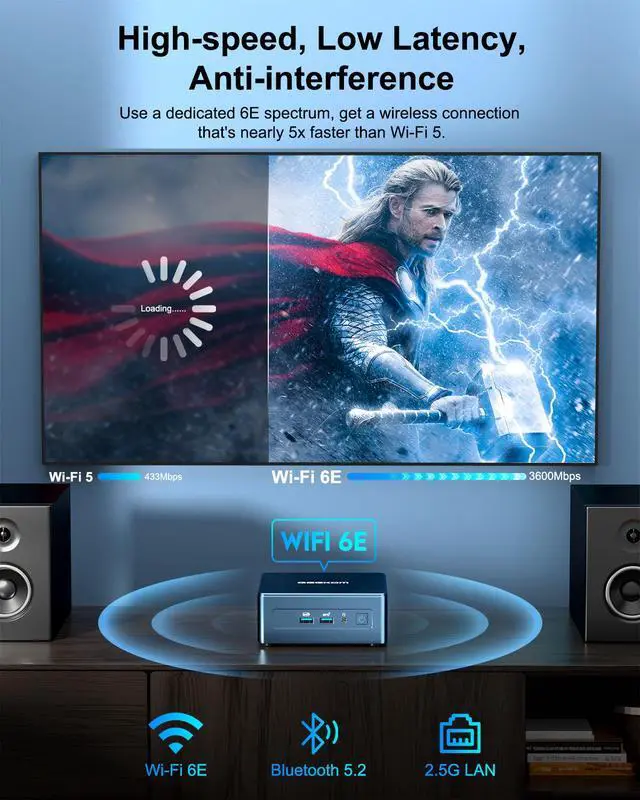 [Network Connection&Cooling System] GEEKOM i9 mini pc with WiFi-6E Wireless, have 2.5G /5G/6G triple band, more faster and lower latency. 2.5 Gigabit Ethernet prepares you for fast Internet connections and high-speed surfing. Bluetooth 5.2 allowing you more quickly to connect other wireless devices. Equipped with a powerful cooling system, it can improve cooling efficiency and reduce operating noise by up to 40%, ensuring that you will not be disturbed while working or playing.