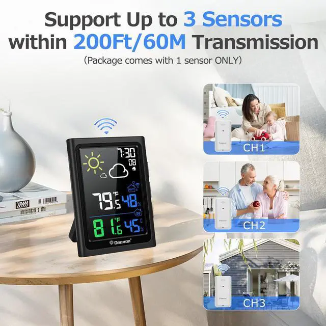 Indoor Outdoor Thermometer Wireless with 3 Sensors