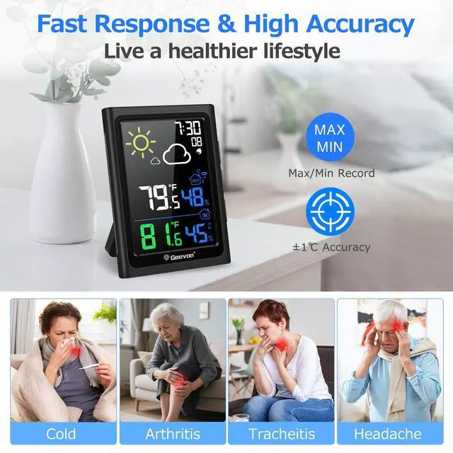 High-Definition VA Color Display Weather Station Thermometer with Backlight