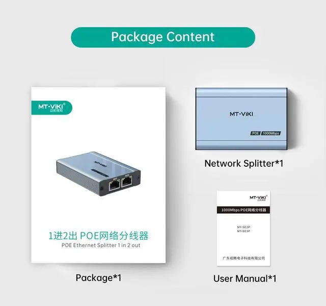POE ETHERNET SPLITTER 1 to 2, MT-SE2P