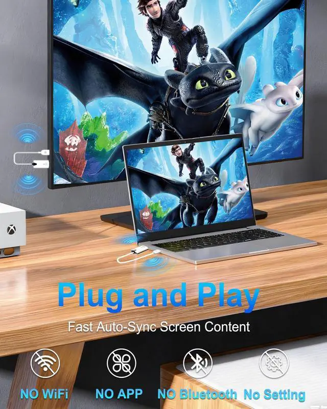 • Zero-Latency Tech, 0.01S Delay4K Decoding, 1080P Ultra HD Our newest Zero-Latency Technology ensures zero latency for smoother operation, keeping your workspace tidy while delivering seamless, high-quality streaming. The technology can decline latency to less than 0.01S while enjoying a large screen silky experience. Wireless video transmitter and receiver supports 4K decoding and 1080P Full HD output at 60Hz for ultimate immersive visualsideal choice for family gatherings, meetings, or home theater experiences.