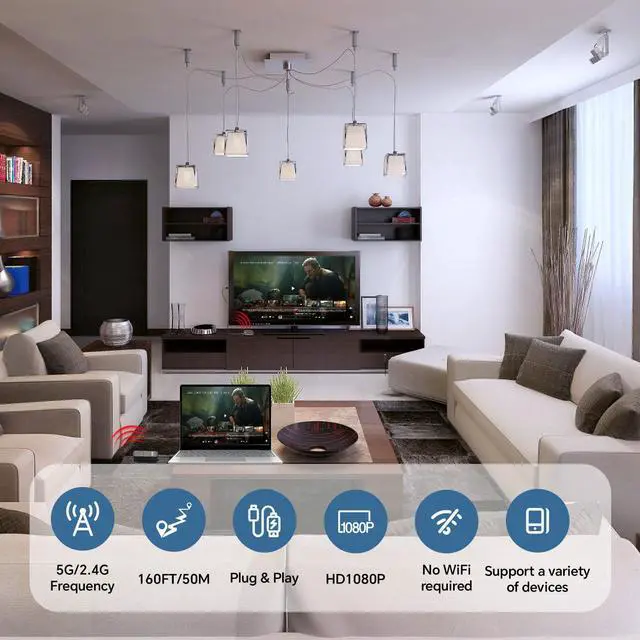 - Step 1: Plug the Receiver(RX) to HDMI port of display Device such as TV/Monitor/Projector/etc. and power on via USB-A power adatper or a USB-A port on your TV.