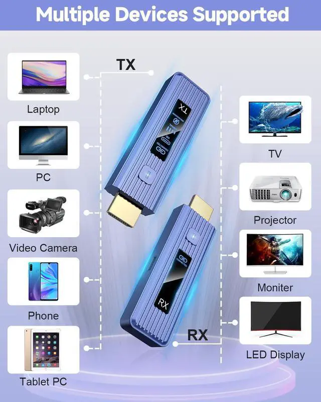 Mirror or Extend Your Screen Mirror your phone or laptop screen or extend your display for multitasking. Supports up to 8 transmitters connected to one receiver for flexible home use.