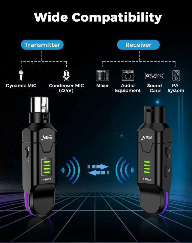 | XLR Connector Design | Plug & Play Wireless: Specifically designed to turn any wired microphone into a wireless one. Just plug it in to skip the cable mess and enjoy instant freedom on any stage. |