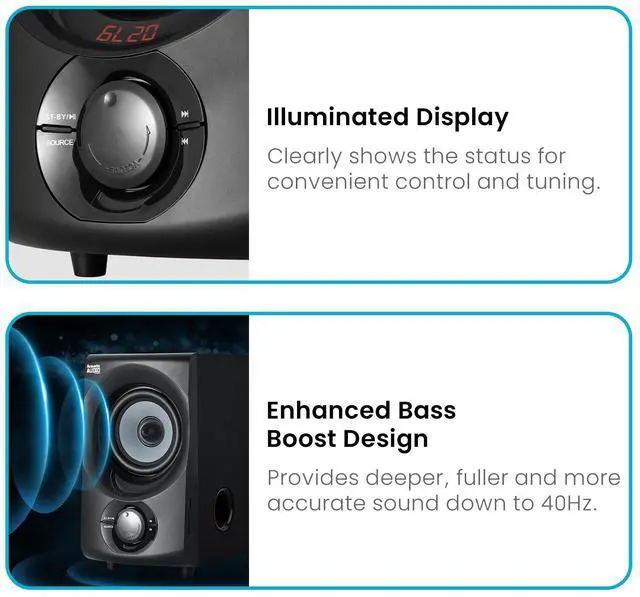 Standard RCA or Optical Jacks connect to most audio sources to create awesome sound.
