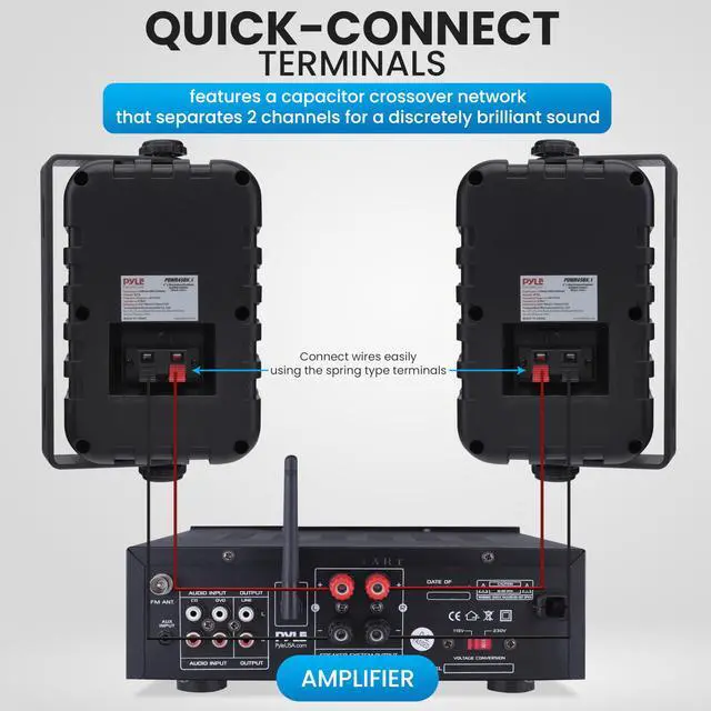 • QUICK-CONNECT TERMINALS: The indoor and outdoor speaker features a capacitor crossover network that separates 2 channels for a discretely brilliant sound. Connect wires easily using the quick connect / disconnect speaker terminals
