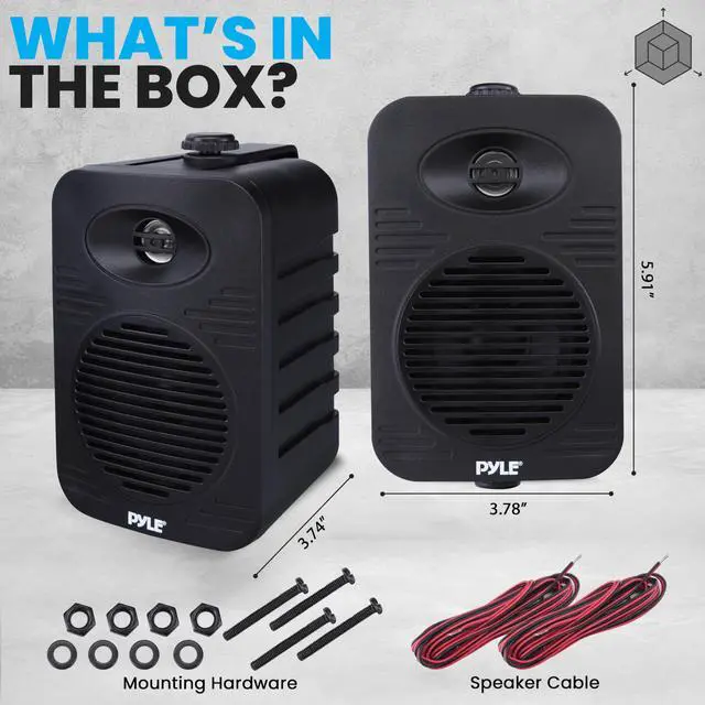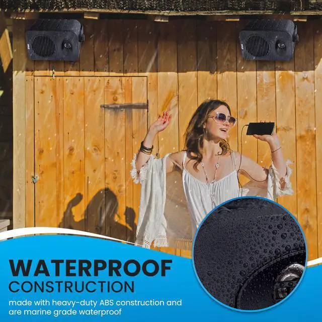 • WATERPROOF CONSTRUCTION: Pyle speakers outdoors are made with heavy-duty ABS construction and are marine grade waterproof making them safe to use in places w/ heavy water splashes. Excellent for use on boats/ marine/ decks/ patios/ poolside/ outdoors
