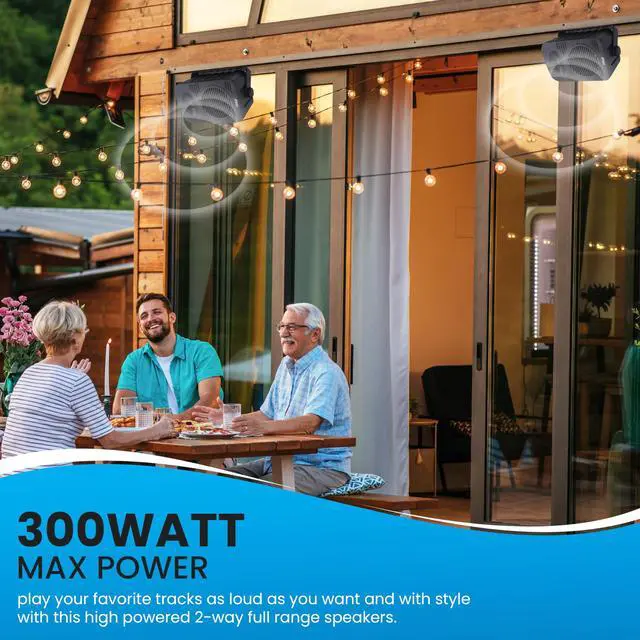 • 300 WATT POWER: The high powered 2-way full range indoor outdoor speakers wired waterproof has a maximum power output of 300 watt peak power / 150 watt RMS at 8 ohms so you can play your favorite tracks as loud as you want and with style