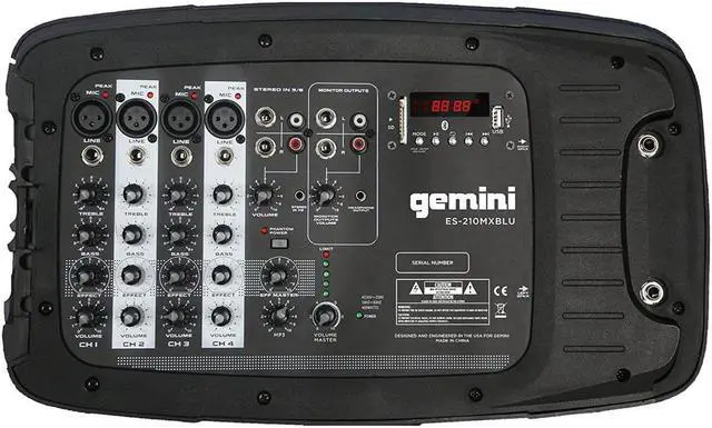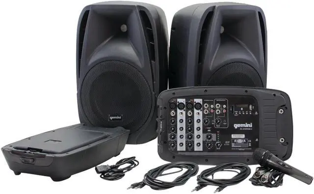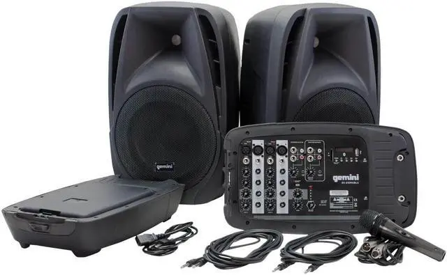 Music on the Go The ES-210MXBLU Portable PA System is designed to give you a true taste of fantastic sound without the unnecessary bulk. With an extremely durable ABS impact resistant nylon fiber cabinet, this magic box weighs only 44 lbs. The ultra-lightweight speaker system also comes with ergonomic top and side handles so you can easily carry it wherever you need to. A Complete Package You don't just get a box; you also get one microphone, 15V of juicy phantom power for capacitance microphones and all the cables you need to make this beast sound out loud