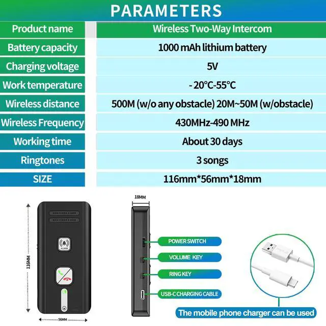 Transmission distance: about 500 meters in the open space, 20-100 meters in partition walls, floors 1 to 8