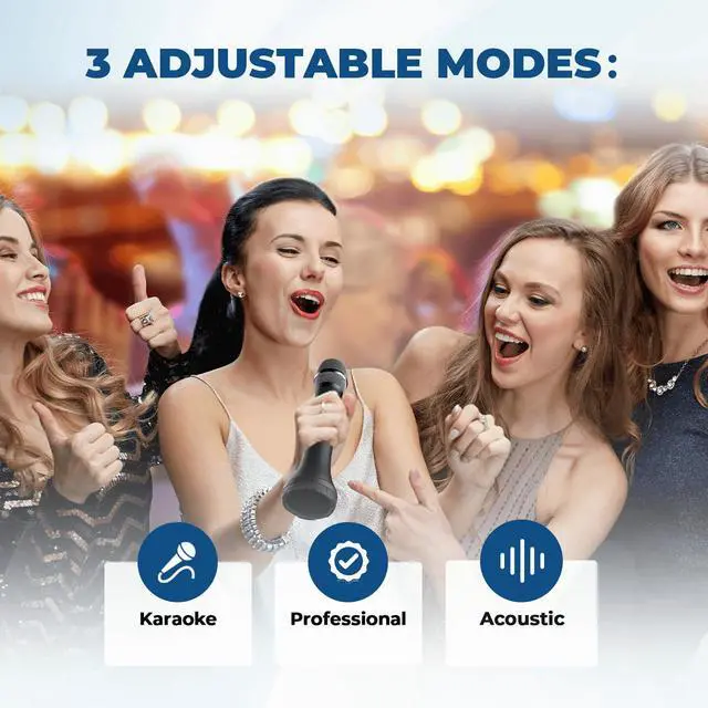 It offers Karaoke/Professional/Acoustic modes, and adjustable reverb.