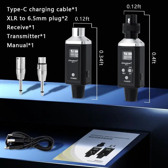 UHF Wireless Microphone Transmitter and Receiver, XLR Adapter for PA System, Audio Mixer, Condenser Mic - 164ft Long Range for Church, Classroom, Karaoke, Speech