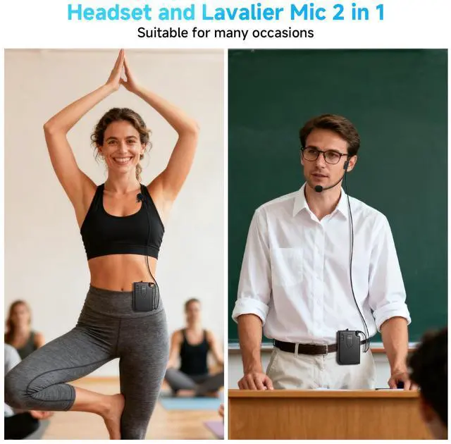 Professional Wireless Headset and Lavalier Microphone: Professional wireless microphone system features cardioid pickup which make your sound more center and clear. Amplify your voice well and saves your throat when you need to speak out loud.
