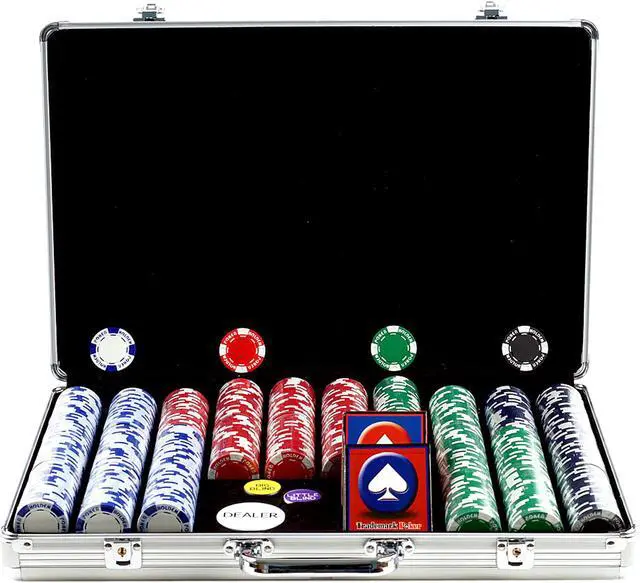 Aluminum caseThe case is produced from the finest aircraft aluminum, so it’s lightweight, good-looking, and offers great protection for your chips. The interior is black felt with space for 650 chips and two decks of cards, and features a space for your hold'em dealer button.