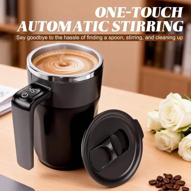 Automatic Stirring Coffee Cup with Temperature Display, Rechargeable Coffee Mug, Self-Stirring Mug with Lid, Stainless Steel Material, Smart Mixing Cup for Coffee, Chocolate, Milk and Other Beverages