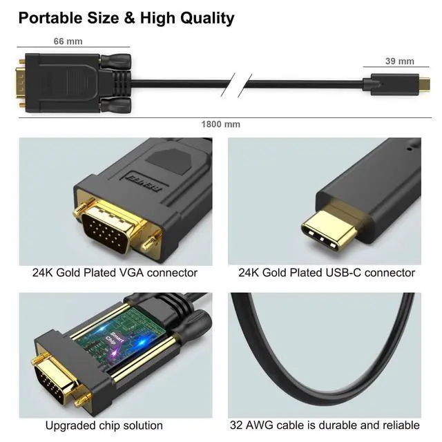 ![Alt view image 4 of 7 - USB C to VGA 6 Feet Cable, USB Type-C to VGA Cable [Thunderbolt 3/4 Compatible] with iPhone 15 Pro/Max, MacBook Pro/Air 2023, iPad Pro, iMac, S23, XPS 17, Surface Book 3 and More](https://c1.neweggimages.com/productimage/nb640/C688D2604210VPQR04B.jpg)