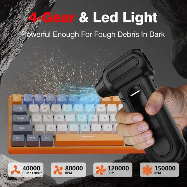 Meet the ANABOX 150,000 RPM Electric Air Duster the ultimate upgrade for your cleaning routine. Built with a next-generation brushless motor, it blasts powerful airflow at 60m/s, clearing dust from every tight corner effortlessly. Whether youre cleaning a PC, keyboard, car vent, sofa, or camera, this cordless blower gets the job done faster and cleaner. Powered by an 8000mAh high-capacity battery, it runs up to 110 minutes on a single charge and supports Type-C fast charging. The 4 adjustable speeds give you precise control from gentle dusting to full-power blow. Designed for convenience, it includes 5 multi-size nozzles, 3 cleaning brushes, and a carry bag, making it the perfect all-in-one tool for home, office, or outdoor use. At just 0.63lb, its lightweight, portable, and eco-friendly a smart alternative to disposable air cans. Clean smarter, live greener, and power through dust with ANABOX.