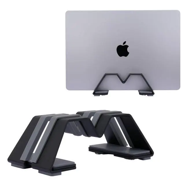 Upgrade your workspace with our Adjustable Vertical Laptop Stand, designed for those who value both form and function. Made from high-grade 6061 aluminum alloy, this stand boasts a 3mm thick, finely sandblasted, and anodized finish that perfectly complements the look of your MacBook or other high-end laptops. The stand's innovative, patented design allows you to easily adjust the slot width with a hidden screw, ensuring a snug fit for any laptop, from slim models to large 17-inch devices.