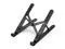 Ventilated laptop stand helps keep laptops running cooler. Hollow design and adjustable height increase airflow.